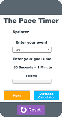 The Pace Timer Enter the event you intend to run and the time you hope to hit and the App will tell you the pace you need to set. Click Here |