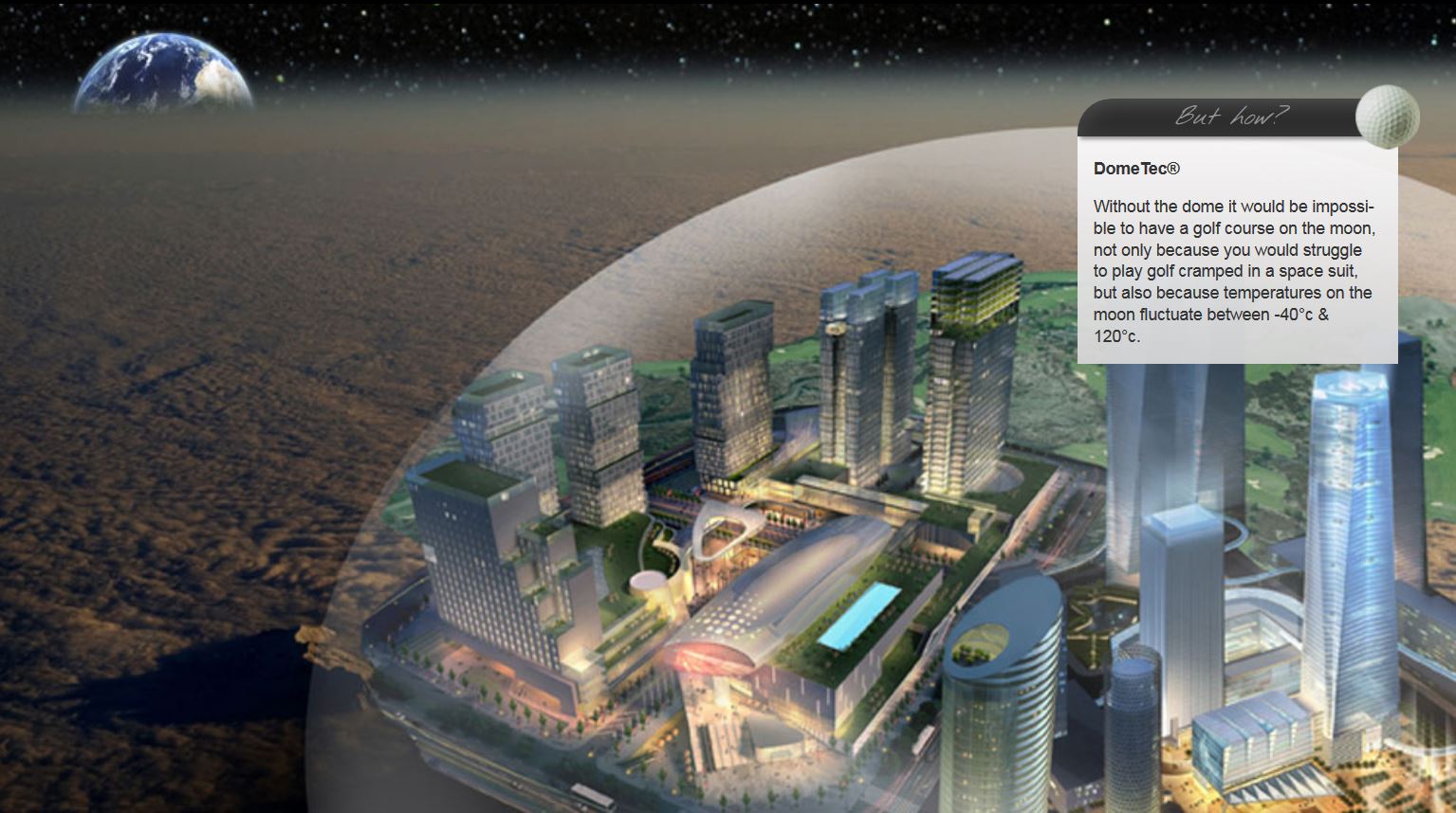 The project we are most proud of is the one we couldn't have done by ourself. In our Mun eco dome project. We partnered with Jebediah Kerman and his company the Mun Corporation to build a resort for an anonymous client on yes the mun(moon). It was a huge scientific and construction undertaking but we did it due to the huge amount we charged we even profited our normal percentage of 1337%. The client has kept this a private resort but has allowed us to share with you this picture, to see all the opportunities that our business offers you.
