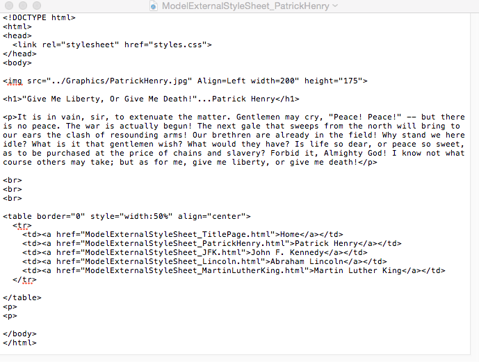 Contains: Browser Window Image of the Henry Page / Home Page Code / Text / Image