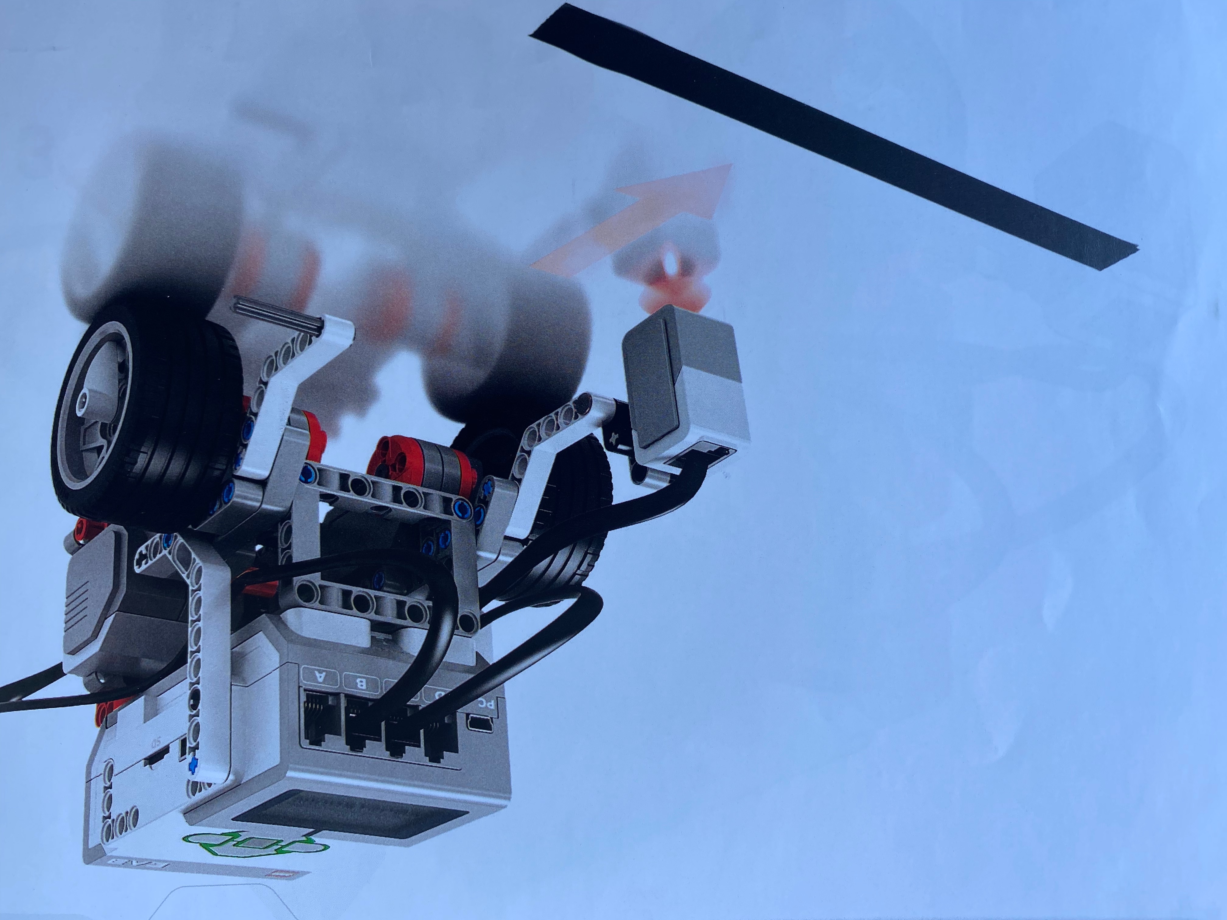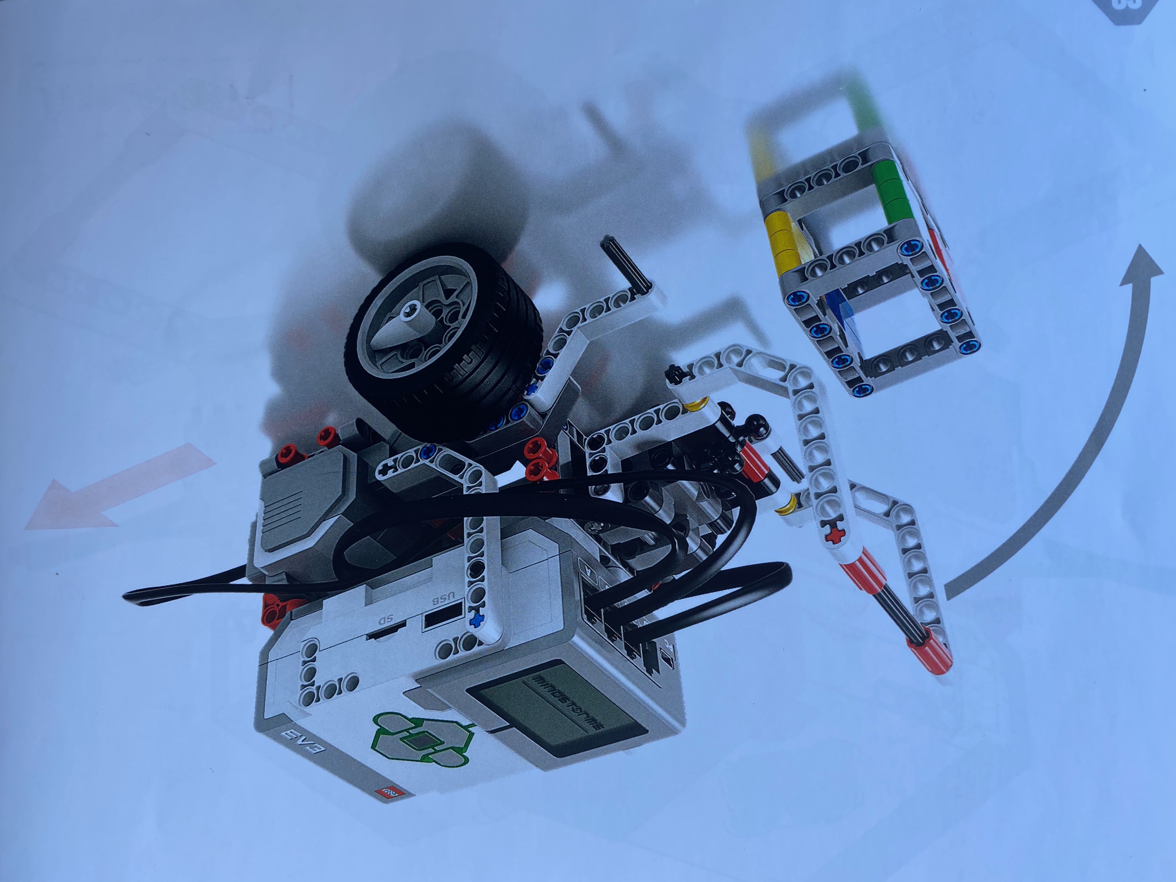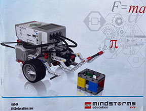 | 5. Create Front Arm Lift (p.68) The EV3’s front arm lift closed down over the cube and then dragged it backwards for a few seconds. Image / Code / / (Mobile) (YouTube) |