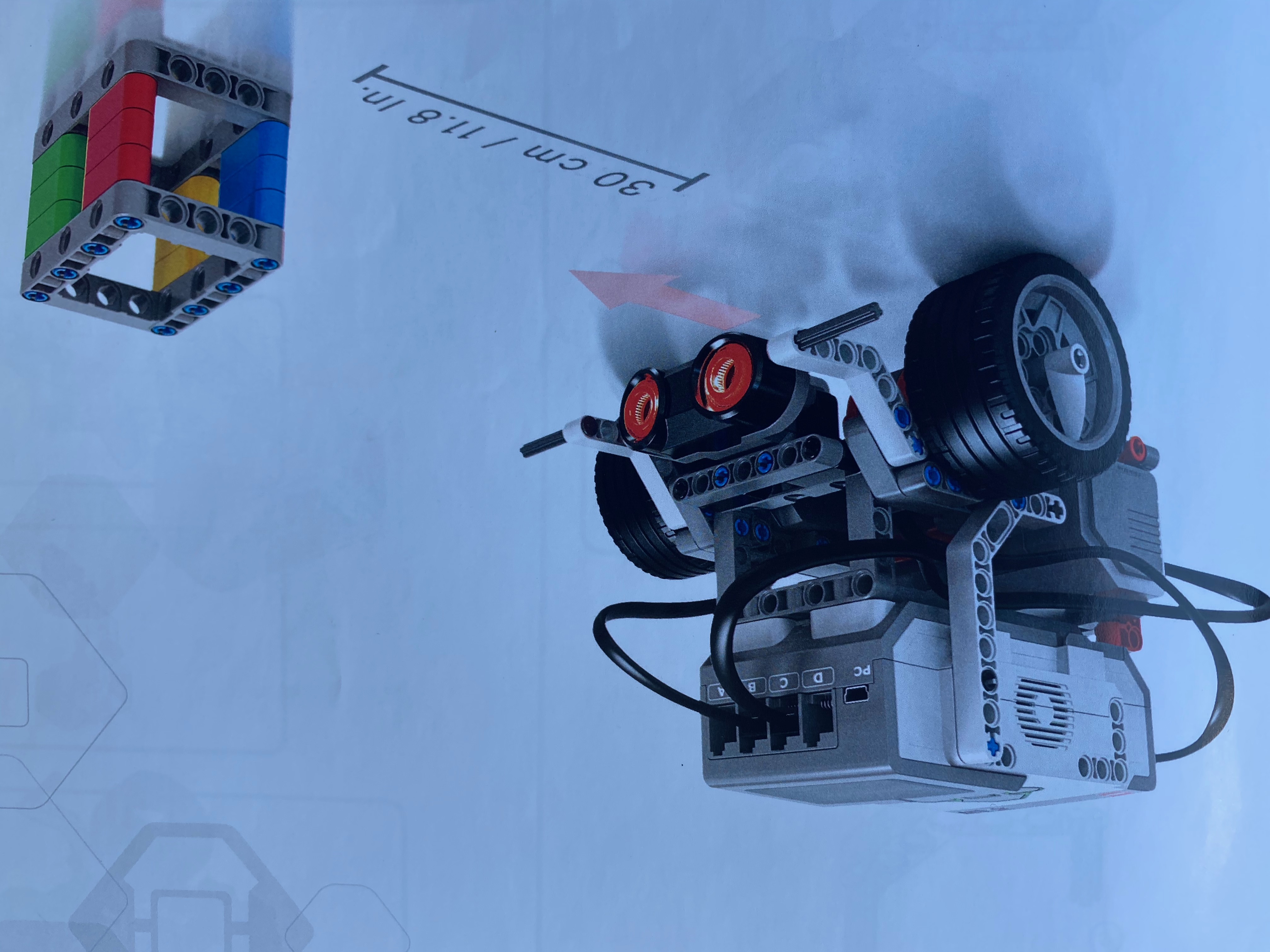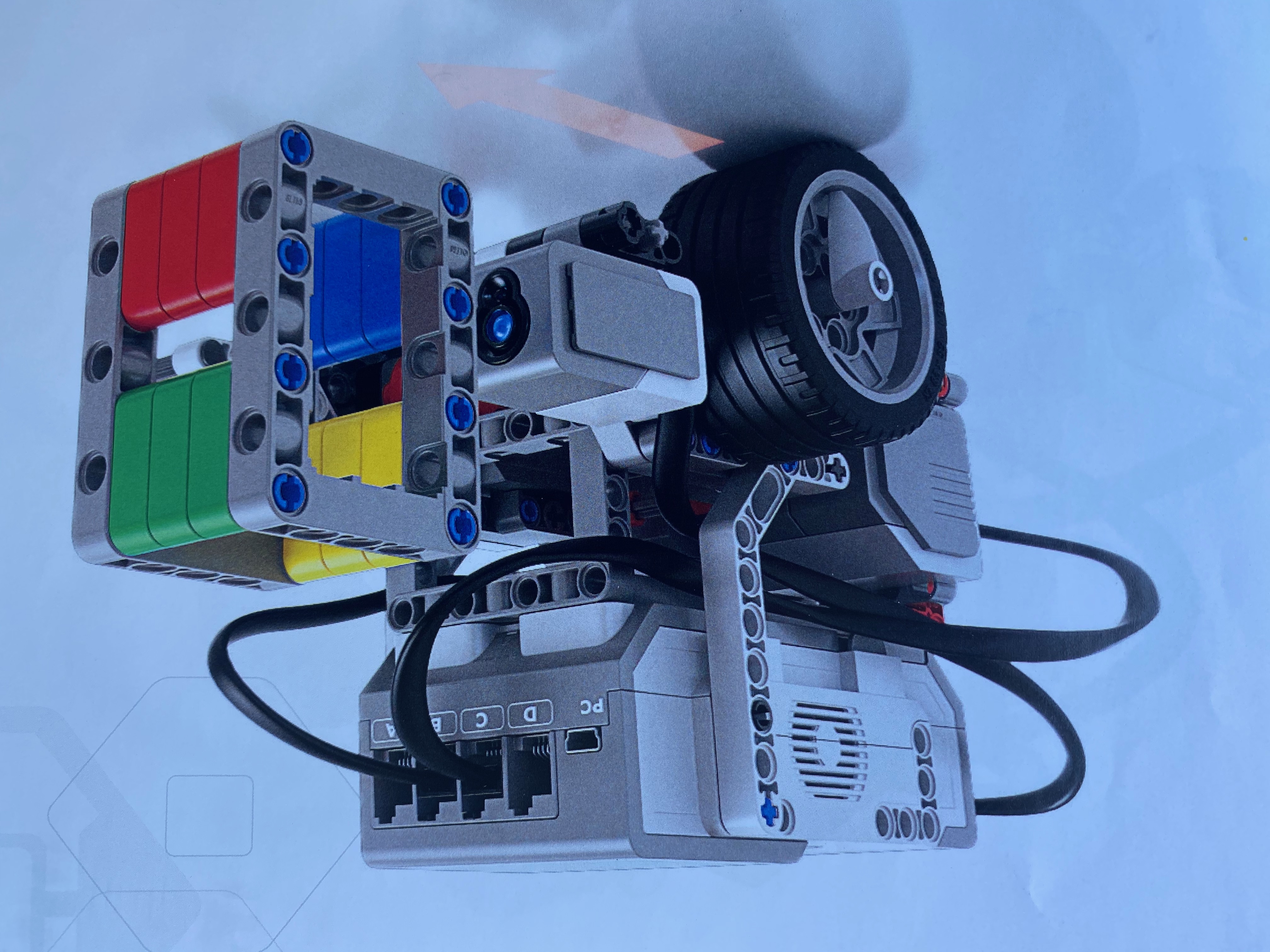 6. Color Sensor (p.72) 6b. Color Go: The EV3’s move for a few seconds when the blue portion of the cube was placed in front of the color sensor. |