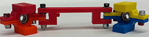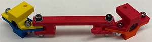 - Now connect the Left Steering Column/Rack to the Base Plate. Line up the hole on the base of the left Steering Column with the holes on the left side of the Base Plate (Take a look at the Class Models or images (left ). Connect the Steering Column to the Base with a screw (m3 #14/orange), with washers and locking nut. Again, tighten just enough so that the screw sticks in the plastic of the Locking Nut - you want the Steering Column to turn easily. I use the washers to keep plastic from touching plastic - this allows the steering column to turn more smoothly