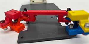- On the short Square Arm, set a screw (m3 #10/red), and locking nut. (Note: It is not necessary to set a second red screw on the longer arm...I did though (see image).