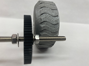 - Line up all the parts so that when you add the wheel, the bolt should just barely be sticking out the right side of the wheel with the Locking Nut. Once you feel it is lined up, begin screwing the wheel onto the bolt, from the right side, toward the Spur Gear. Remember, the Locking Nut must be on the right exterior side of that wheel. This will take some adjustment.