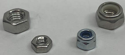 Look at the image. "Nuts" are on the left and "Locking Nuts" are on the right. Notice the plastic in the "Locking Nut." That little bit of plastic keeps the screw or bolt from unwinding out of the "Locking Nut," unlike the standard "Nut". The instructions below will explain when to use each nut and how to use them. |