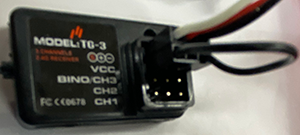 - Connect the Transformer Power cable (*ESC) to the Reciever. Insert it into the top slot "VCC".