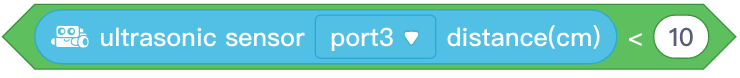An Ultrasonic Sensor detects approaching objects. It does this by measuring the distance to the object. Look at the two eyes on the front of your robot. One of the “eyes” transmits a sound, and the other waits for the echo of the sound to return. This is how the distance to the object from the sensor can be calculated. You enter the distance and the sensor will detect any object in front of it within that range.The ultrasonic sensor has a range of 3-400cm. If an object is outside this range, the sensor will return a value of 400.